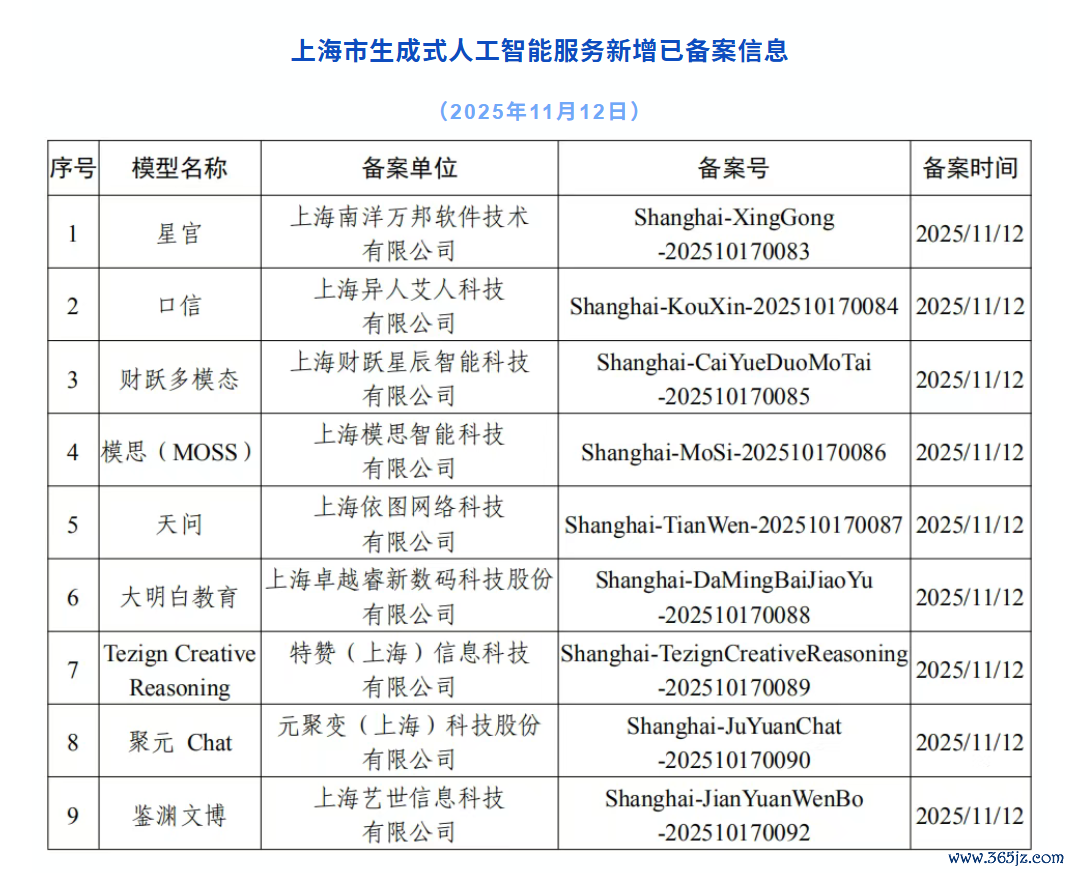 上海新增9款已完成备案的生成式人工智能服务星迈网上海新增9款已完成备案的生成式人工智能服务